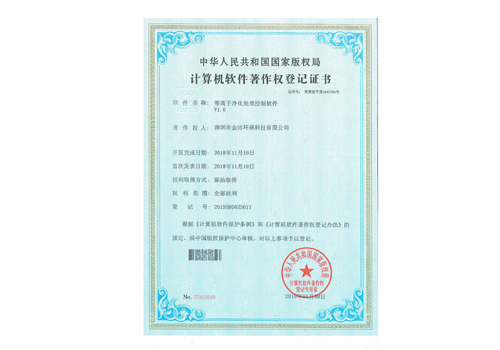 等离子净化处理控制软件专利证书