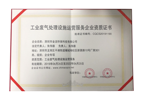工业废气处理设施运营服务证书